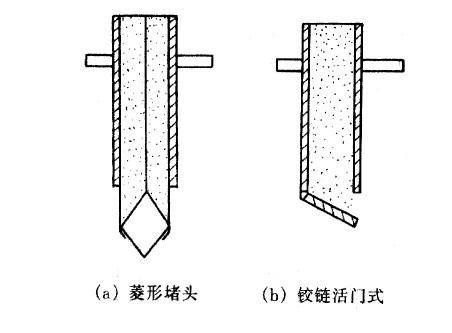 经结晶后的涤纶树脂由料斗送入气流输送干燥器上部,由上溢流而下,干燥后的合格产品(含水量小于等于0.02%)由出料管卸出。空气经过滤器,由鼓风机送入电加热器,加热后从干燥器底部进入,将湿料沸腾干燥。为了提高利用率,可将部分气体循环使用。涤纶树脂采用多层振动流化床干燥机,各层气体分布板用自动液压翻板式结构。这种结构的特点是:先从振动流化床干燥机较下层气体分布板通过自动液压翻板卸下干燥度合格的涤纶树脂后,恢复气体分布板至原状,再逐层通过翻板卸下物料,直至较上层气体分布板翻下物料恢复原状后,再加入新的湿物料进行下一次的干燥循环。在正常生产情况下,每一次的干燥循环周期可按照预先规定的时间进行。其优点是可以完全保证物料干燥度的要求。多层振动流化床干燥机结构上类似于板式塔,可分为溢流管式和穿流板式。国内目前均用溢流管式多层振动流化床干燥机。 一般溢流管下面装有调节装置,其结构有: (1)菱形堵头[图3-3(a)] 调节堵头上下位置,可以改变下料孔自由截面积,从而控制下料量。这种结构由人工操作调节。